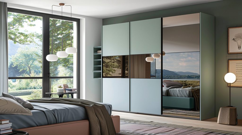Mirrored sliding doors can make small rooms appear larger. Pair them with large furniture pieces to enhance the sense of space in compact areas.